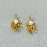 1 Pair Elegant Fireworks Pearl Plating Brass Zircon Drop Earrings