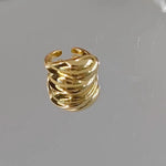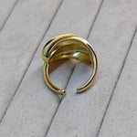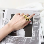 925 Sterling Silver Adjustable Opening Ring Gold Plated Wide Smooth Fashionable Geometric Pattern Ring for Wedding Romance