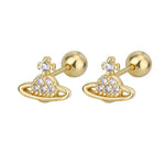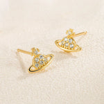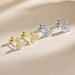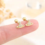 925 Sterling Silver Sleeping Saturn Stud Earrings Women's Planet Element Fashion Jewelry No Need To Remove Ear Jewelry