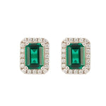 Classic Lab-Grown Emerald 5*7mm Octagonal Hoop Earrings Women's S925 Silver Non-Irritating Studs Geometric Pattern Jewelry