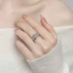 Double Layer S925 Sterling Silver Moissanite Castle Firework Ring Lace Hollow Out Princess Style Crown Pattern Women's Jewelry