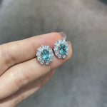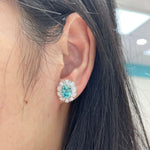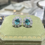 Elegant Lab-Grown Paraiba Stud Earrings For Women 1.5 Carat Luxury Jewelry Silver Geometric Pattern Polished Electroplated
