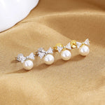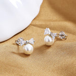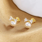 Fashionable S925 Sterling Silver Butterfly Knot Pearl Stud Earrings Women's Simple Elegant New Style Jewelry Accessories