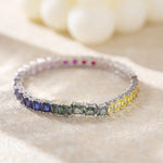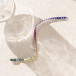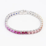 Fashionable Versatile 4*4 Tennis Chain Cultured Color Gemstone Rainbow Single Row Square Tennis Bracelet Geometric Pattern Business Occasion Silver Plated Unisex