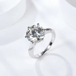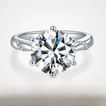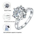 Luxury S925 Silver Plated Gold 5 Carat Round Classic D Color Moissanite Ring Elegant Six Claw Setting French Style Women's Ring