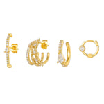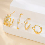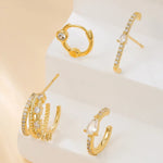 New Style Simple Four-Piece Set Diamond Embedded Claw Type Earrings Waterdrop Zirconium Alloy Gold Plated True Gold 18K Earrings