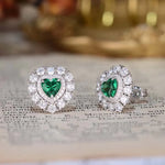 Retro Synthetic Emerald Heart Shaped Zirconia Ladies Earrings French Vintage Style Geometric Pattern 925 Silver Plated Hoops