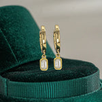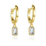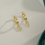S925 Silver Rectangle Earrings Simple Moissanite Dipped 14K Gold Women's Style Geometric Pattern Jewelry Hoops