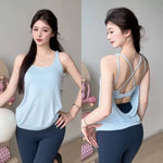 Backless Thin Yoga Clothes Women's Tank Top With Chest Pad No Sleeve Running Training Fitness Upper Apparel Pure Color Nylon Cotton Blend