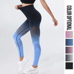 High Waist Long Yoga Pants Women's Seamless Fitness Gym Wear Quick Dry Hollow Out Gradient Color Butt Lifting Style