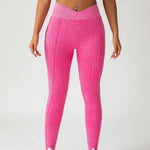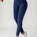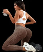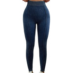 High Waist Seamless Yoga Fitness Pants Women's Washed Denim Threaded Tummy Control Butt Lifting Outdoor Sports Trousers