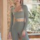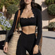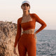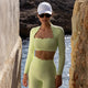 Lady Streetwear Solid Color Chemical fiber blending Spandex Scalloped Neckline Active Tops Vest Leggings