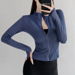 Women's Yoga Sportswear Jacket Fitness Training Tight Fit Running Outfit Stand Collar Ultra Long Sleeve Polyester Outerwear