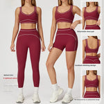 Zhechuang Color Block Fleece Yoga Set Women's Fitness Running Exercise Outfit Double Shoulder Strap High-End Sensation Sportswear