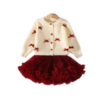 Christmas Theme Long Sleeve Round Neck Knitted Cardigan And TUTU Skirt Set For Girls Autumn Winter New Arrival Versatile Outfit