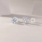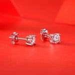 Classic Four Claw Silver Earrings Women's Elegant Jewelry Geometric Pattern Couple Style Round And Square Diamond Inlay