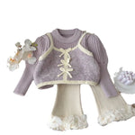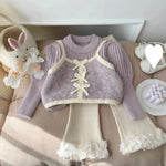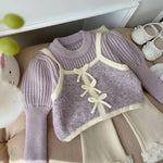 Girls' Faux Two-Piece Sweater New Fashionable Toddler Autumn Winter Outfit Children's Pullover Knitted Sweater Fleece Set