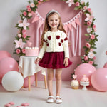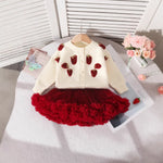 New Hand-Knitted Girls Sweater TUTU Skirt Two-Piece Set Autumn Winter Fashionable 3D Knit Soft Polyester Long Sleeve New Style