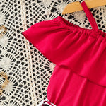 Summer Children's Clothing Floral Patterned Romper And Pants Set For Girls With Strap Tops And Long Pants Two-Piece Polyester Suit