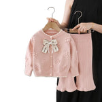 Sweet Children's Sweater Jacket Set Two-Piece Suite Girl's Soft Polyester Blend Long Sleeve Round Neck Autumn Winter Clothes