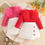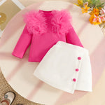 Sweet Girl Baby Girl Long Sleeve Mesh Trim Skirt Set Autumn Winter Soft Polyester Decorative Button Half Body Skirt Set