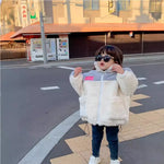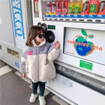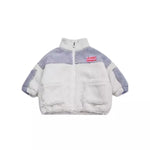 Thickened Winter Jacket For Boys And Girls Warm Plush Coat Fashionable Color Block 3-8 Years Old Children Soft Polyester Fabric Long Sleeve