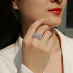 Wide Face Ring S925 Silver Moissanite Paved Ring Fashion Jewelry Women's Ring Geometric Pattern Cold Style Diamond Craft