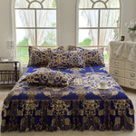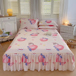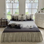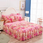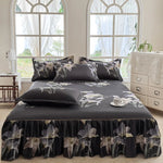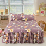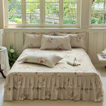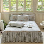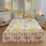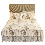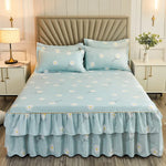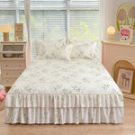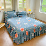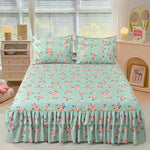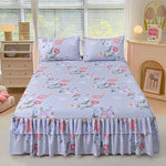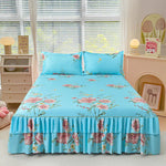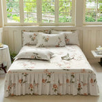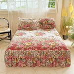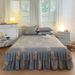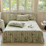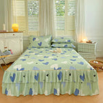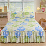 Aloe Vera Cotton Flocking Bed Skirt Single Piece Double Sided Princess Style New Cotton Bed Cover Plant Floral Pattern