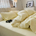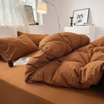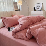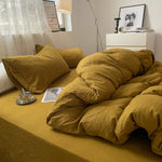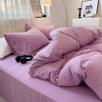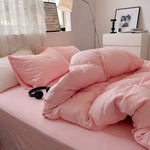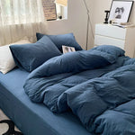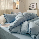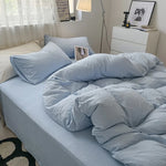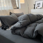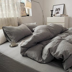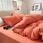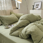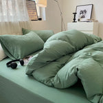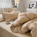 Japanese-style spring and summer washed cotton solid color four-piece cotton student three-piece cotton bed hat bedding batch