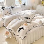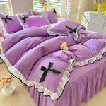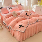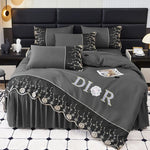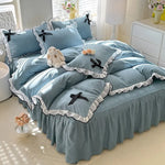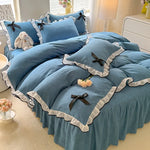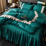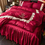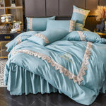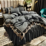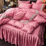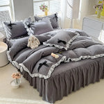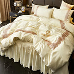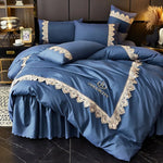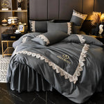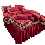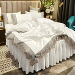 Luxurious European Style Bedding Set New Version Embroidered Lace Flocking Three Or Four Piece Pure Color Bed Skirt