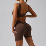 Spring Summer Sensual U-Neck Backless Fitness Suit Women's Yoga Sportswear Slimming Hip-Lifting One-Piece Cloud Sensation Fabric
