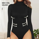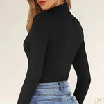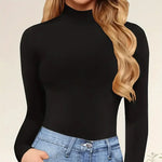 Women's Solid Color High Neck Long Sleeve Tight Bodysuit Shaping Base Shirt Sexy Jumpsuit Soft Wear-resistant Comfortable Seamless Dyed All-season Mid-waist Triangle Pants Polyester Elegant French Style