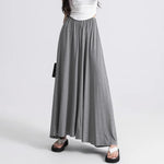 Grey Soft Mid-Length A-Line Skirt Women's Summer Elastic High Waist Full Flounce Casual New Style Polyester Fabric Skirt
