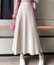 New Pure Color Elastic Waist Midi Pleated Skirt Women Casual Versatile Knitted Net Color Half Body Skirt Commute Style