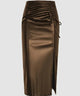 Sexy Mid-Calf PU Leather Skirt With Slit Fashionable Wrap Around Mini Skirt Business Casual Style Solid Color Zipper And Patchwork