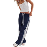 Spring Summer New Style Women's Loose Sporty Casual Pants Side Stripe Straight Leg Trousers Street Fashion High Waist Elastic