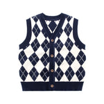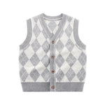 Autumn 24 new boys' vest V-neck rhombus open buckle vest children's sweater children's sweater children's sweater big children's sweater