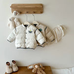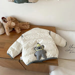 Baby Boy Lightweight Down Jacket Autumn Winter Outwear Warm Cartoon Design Children's Fashionable Outerwear Soft Polyester Fabric Long Sleeve