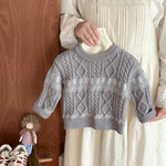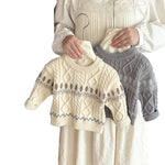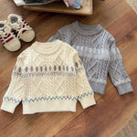 Baby Boys' Autumn Winter Knitted Sweater Retro Embroidered Round Neck Single Layer Inner Wear Soft Polyester Acrylic Long Sleeve