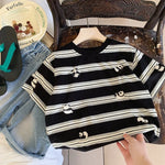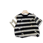 Boys' Summer Cotton Short-sleeved T-shirt New Children's Summer Thin Top Baby's Striped T-shirt New-style T-shirt