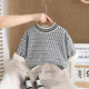 Fleece Lined Round Neck Sweater For Boys Baby Autumn Winter Clothes Stylish Kids Fashionable Winter Clothing Soft Cotton Plaid
