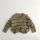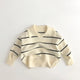 Net Red large lapel V-shaped ~ Korean autumn and winter children's sweater Western style men's and women's baby wool striped knitted bottoming shirt