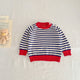 New style baby sweater men's and women's round neck Western style striped polka dot bottoming shirt newborn cotton top