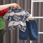 Pattern: Color Block Quantity: 2 Pieces Set Sets Type: Pants Sets Occasion: Holiday,Daily Fabric Type: Cotton Neckline: Round Neck Sleeve Length: Short Sleeve Style: Simple Style Season: Summer Fit Type: Regular Fit Children's Clothing Type:...