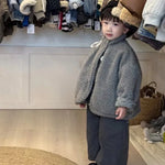 Winter Kids Cute Thickened Warm Plaid Cotton Lamb Fur Double-Sided Coat New Style Round Neck Long Sleeve Unisex Jacket
