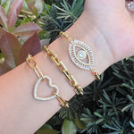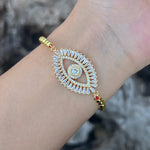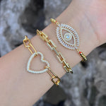 Basic Shiny Eye Brass 18K Gold Plated Zircon Bracelets In Bulk