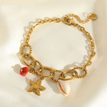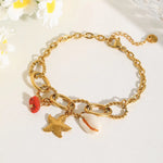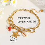 Basic Sweet Commute Starfish 304 Stainless Steel 18K Gold Plated Cuban Link Chain Curb Chain Multi Charms Bracelet Bracelets In Bulk