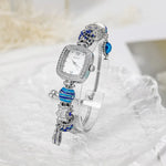 Fall New Floral Rectangle Quartz Watch Women's Luxury Bracelet Watch Student Fashion Accessory Metal Band Pointer Display