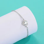 Fashionable Minimalist Silver Bracelet For Women With Unique Design Heart Shaped Moissanite Geometric Pattern Anniversary Gift