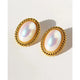 1 Pair Elegant Oval Inlay Brass Pearl 24K Gold Plated Ear Studs
